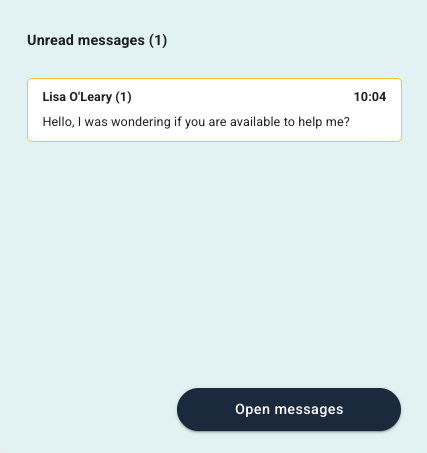 Here you see a list of unread messages that have been sent to clinicians by the patients. The patient’s name, number of unread messages and date are shown. A preview of the actual message that was sent in is also displayed.