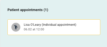 This tile gives an overview of upcoming appointments that have been set up between the clinicians and their patients. Here the number of planned appointments is shown, including a list with the name of the patient concerned, the title of the appointment, date and time. The symbol next to each line indicates what type of appointment it is (for example video, in-person or telephone).