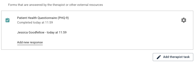 If no specific therapists are selected, it will be available to all resources linked to the patient. After the element has been added, it is possible for the therapist who has been assigned the form to open the element and add a new response.