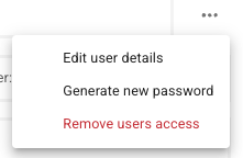 By using the menu with three dots next to the name you can choose Edit user details to change the fields that should be updated. From this menu it is also possible to remove access for a user.
