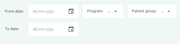 You can enter the dates that are included in the chart under From date and To date, and select a specific Program or Patient group if that is relevant. All programs, patient groups, on all dates are included by default if nothing else is specified here.
