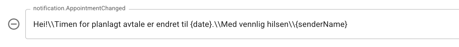 The text in the template can be edited, and the same format that is used in the templates should be applied. All dynamic fields are written with {curly brackets} and in the same format as indicated below: