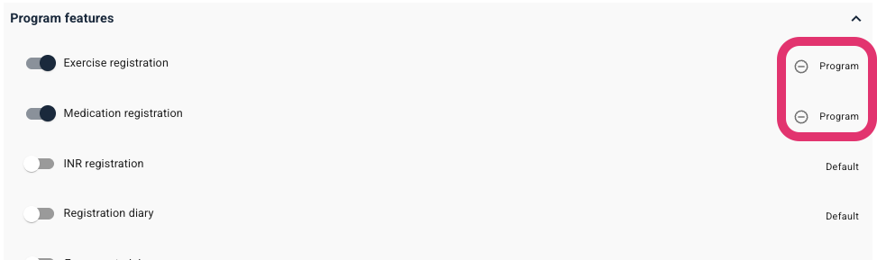 You can read more about various program features which are available to activate from this tab here: Program settings: Features & Health registrations.
