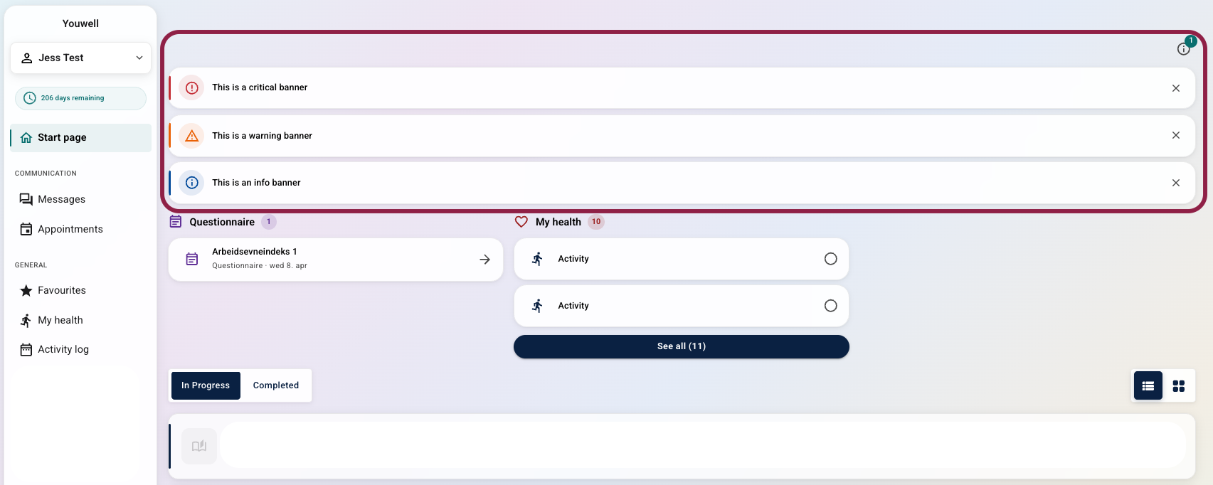 Patients can close the banner, which will collapse it under an info symbol. It can be reopened at any time until the banner is made inactive.