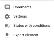 På hvert element finnes ulike innstillinger som kan aktiveres via ikonene på toppen av boksen: