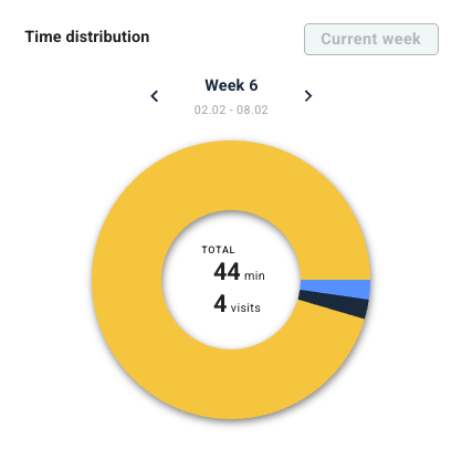 Diagrammet viser totalt antall timer og antall besøk den siste uken. Det er mulig å bruke pilene for å bla frem og tilbake for å se ulike tidsperioder. Det er også en knapp for Nåværende uke øverst for å gå tilbake til den nåværende uken.