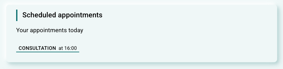 Visning fra forside i pasientapplikasjonen, tidigere design (før 2026). Visning fra Avtaler-siden i pasientapplikasjonen, tidligere design (før 2026). | Visning fra forside i pasientapplikasjonen, nytt design fra 2026. Visning fra Avtaler-siden i pasientapplikasjonen, nytt design fra 2026. |