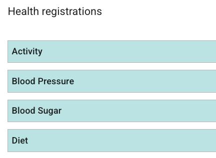 Ofte vil listen som vises her være lik det som pasienten ser i menyen når pasienten er logget inn i pasientapplikasjonen, og det gir et innblikk i hvordan det ser ut for pasienten med disse tilleggsfunksjoner og -registreringer.