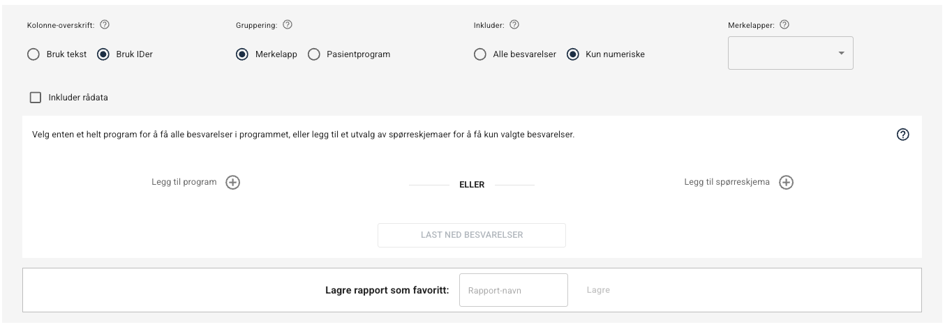 OBS! Hvis du velger "Alle besvarelser", kan noen fritekstfelt inkludere personlige indentifiserbare opplysninger, så det er viktig at du behandler filen i henhold til personvern og helseregisterloven.