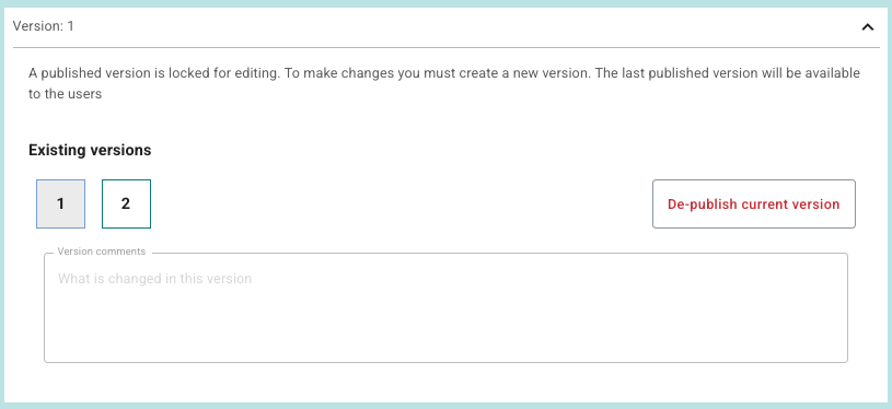 Det vises en oversikt over de ulike versjonene av siden, og det er mulig å legge inn kommentarer på versjonen du jobber med for å loggføre endringer.