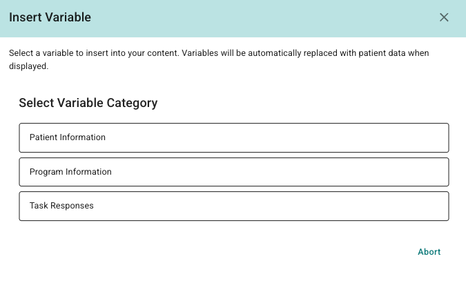 - {{program_name}} – Navnet på programmet pasienten er tildelt