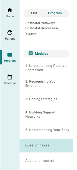 Spørsmåls-elementer og spørreskjemaer gir behandleren mulighet til å hente inn innsikt, informasjon og opplysning fra pasienten. Typisk brukes de til å strukturere oppfølging av pasienten, for eksempel ved å vise noen spørsmål i begynnelsen av et program og senere sammenlikne med spørsmål fra slutten av programmet.