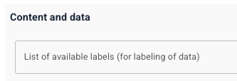 Hvis listen er tom, er det mulig å bruke hvilken som helst merkelapp ved å skrive inn ønsket merkelapp. Hvis det er spesifisert noen merkelapper, er det disse som innholdsprodusenten kan velge blant i oppsettet av skjemaer.