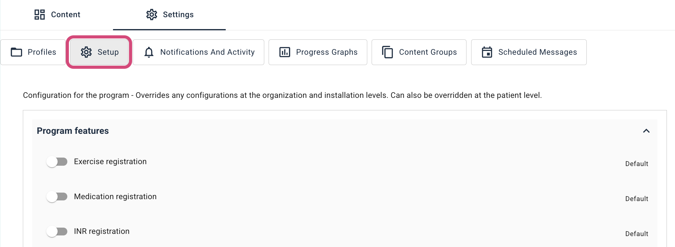 De fleste verktøyene som gjøres tilgjengelig under Program funksjonalitet på Oppsett har en tilsvarende underside i Pasient-fanen slik at behandlerne kan følge med på besvarelsene der. I denne artikkelen er det gitt en kort oppsummering av de ulike funksjonene som kan aktiveres, og innstillingene som kan settes opp under Helseregistreringer.