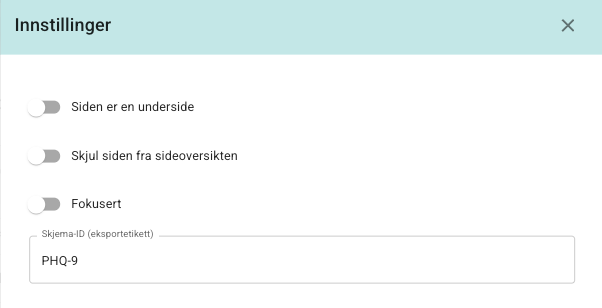 Hvordan du vil navngi skjemaene (bruk gjerne kjente forkortelser, som PHQ-9).
