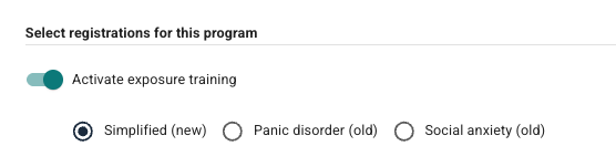 Eksponeringstrening er et verktøy som kan aktiveres under Funksjoner i Innstillinger på programmet. Funksjonen gir pasienten mulighet til å øve på eksponering i situasjoner som ofte oppleves som utfordrende for dem.