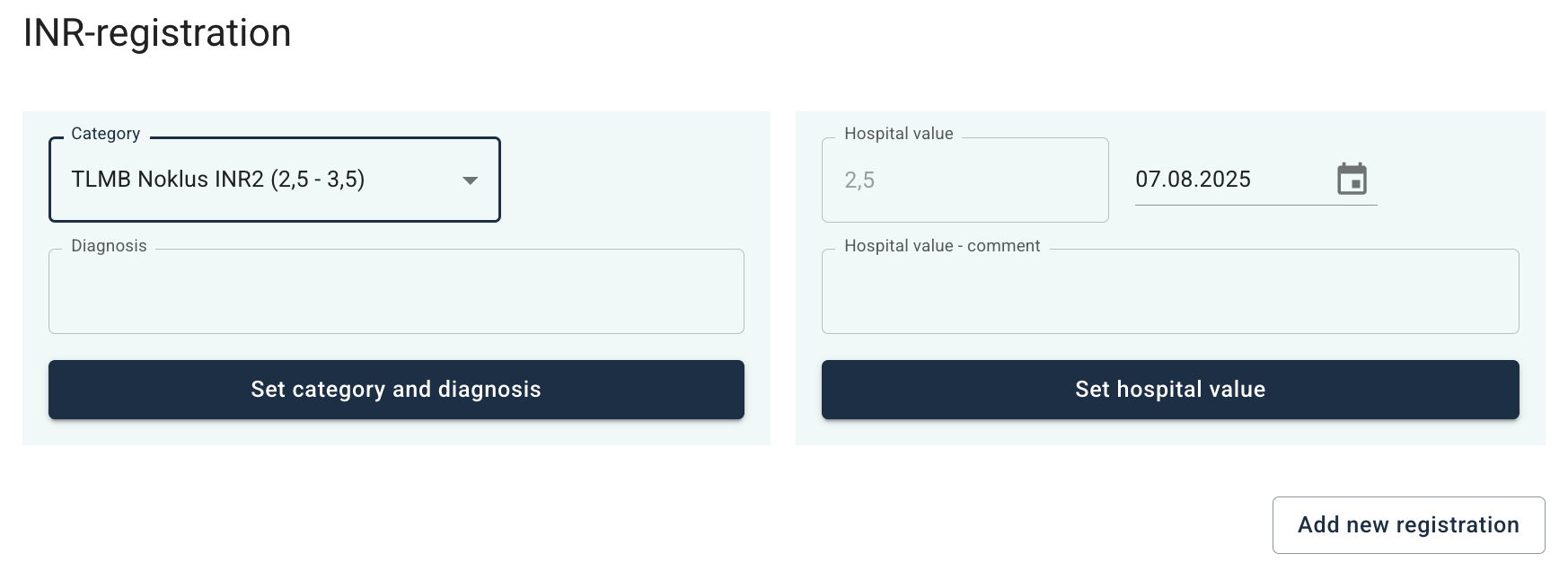INR-registrering er en tilleggsfunksjon som kan aktiveres ved behov. Dersom du ønsker å ta i bruk denne funksjonen, ta kontakt med oss.