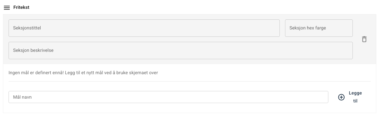 Du kan legge til flere mål eller fritekstfelt i samme blokk.