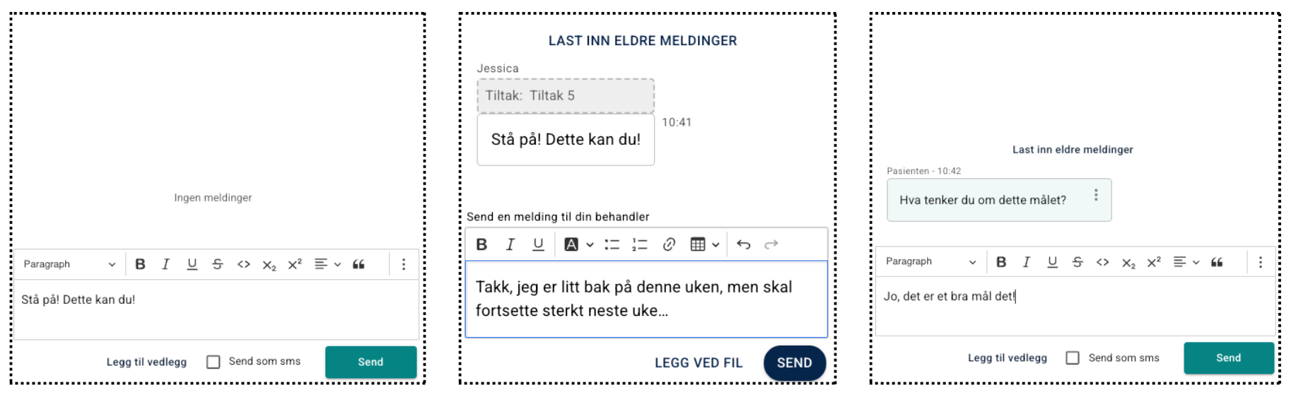 I tillegg kan man aktivere meldinger og kommentarer på enkeltmål og tiltak, slik at behandler og pasient kan kommunisere direkte om målsettingen.