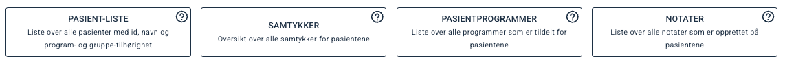 Bruk eksportene på denne siden for å hente ut oversikt og lister over pasient-data.