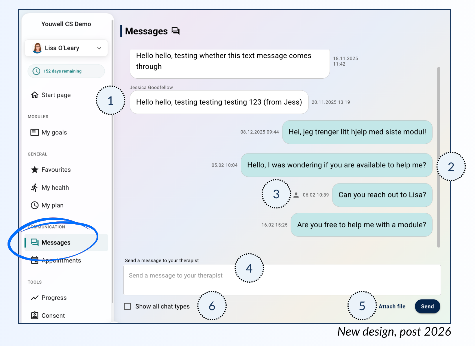 Det er mulig å legge ved vedlegg til en melding. Dette kan være nyttig hvis pasienten ønsker å sende tilleggsdokumenter eller bilder til terapeuten som en del av meldingen.