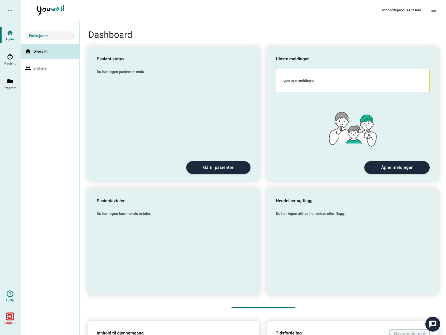 De har ikke fått tildelt noen pasienter enda, så her er dashbordet litt tømt for nå.