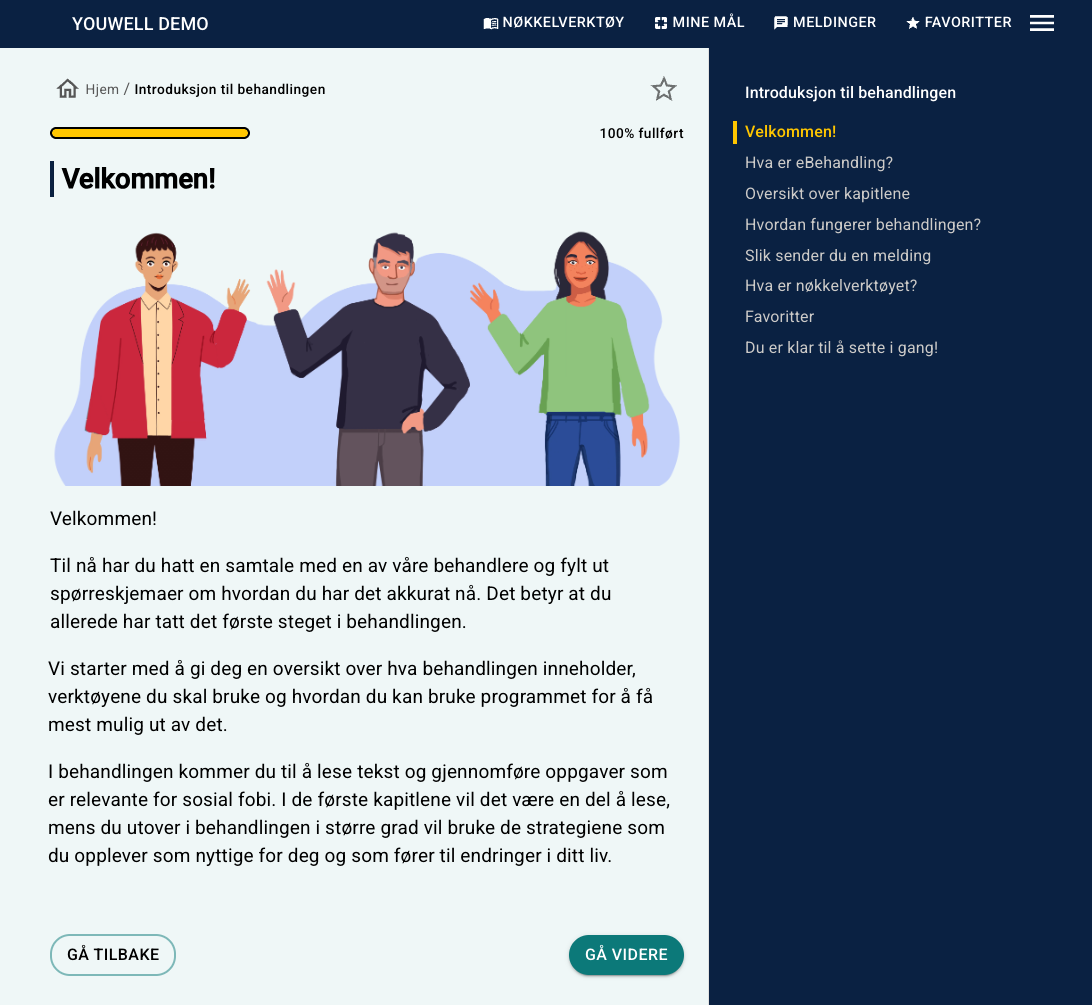 1. Pasienten vil se en velkomstmelding og en progresjonsskala slik at de kan se hvor langt gjennom programmet de har kommet.