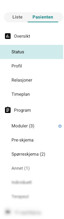 Moduler viser oversikt over modulene pasienten har blitt tildelt.