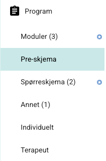 Man kan justere på innstillingene til hvert spørreskjema, samt legge til flere spørreskjema på samme måte som med moduler, så se her for litt mer veiledning rundt dette: Pasientside: Program & Moduler.