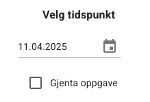Når du har valgt spørreskjemaet som du ønsker å tildele pasienten, velger du tidspunkt det skal sendes på og om oppgaven skal gjentas. Ved å klikke på Gjenta oppgave får du mulighet til å velge intervallet skjema skal gjentas (dag, uke eller måned) og hvor mange ganger.