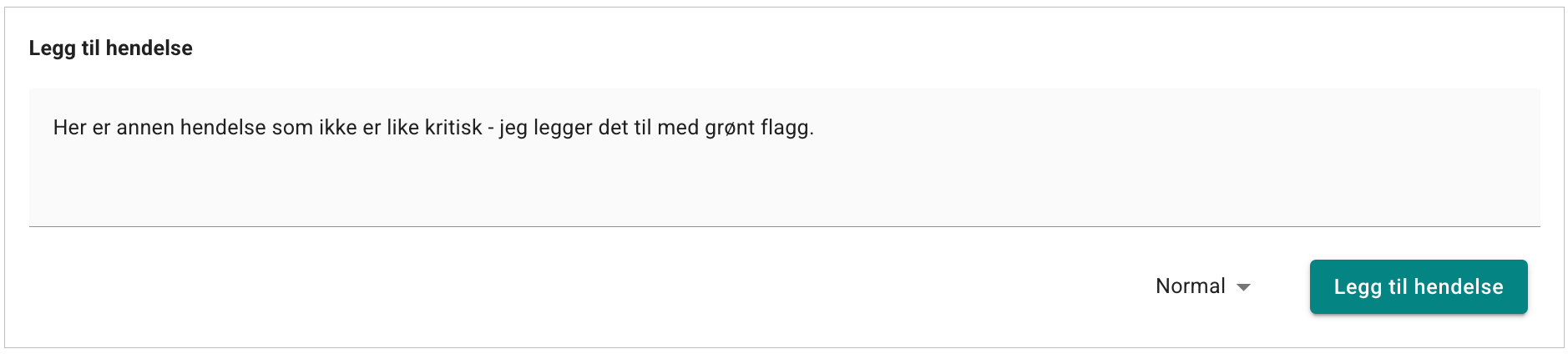 I tillegg kan man opprette eget flagg manuelt ved å skrive inn tekst og velg alvorlighetsgraden. Man kan velge fra Normal, Viktig eller Kritisk. Normal vil tildele et grønt flagg, viktig blir markert i gul, og røde flagger betyr kritiske.