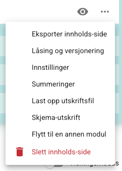 Du skal nå være litt kjent med moduler, innholdssider og elementer. Gå tilbake til de andre artiklene i denne seksjonen hvis du er litt usikker. Her skal vi gå gjennom noen flere innstillinger som finnes under Innhold, ved å trykke på de tre prikkene ved tittel-feltet.