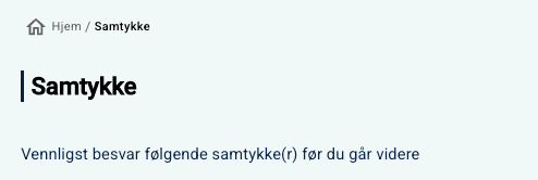Merk at det må være en innholdsside som benyttes (ikke et spørreskjema) da spørsmål om samtykke automatisk legges til i visningen.Dersom samtykket merkes som obligatorisk, vil pasienten ikke kunne få tilgang til innholdet i behandlingsprogrammet før samtykket er godkjent. I slike tilfeller vil resten av pasientapplikasjonen være sperret, og pasienten får en tydelig beskjed om at samtykke må gis for å kunne gå videre.