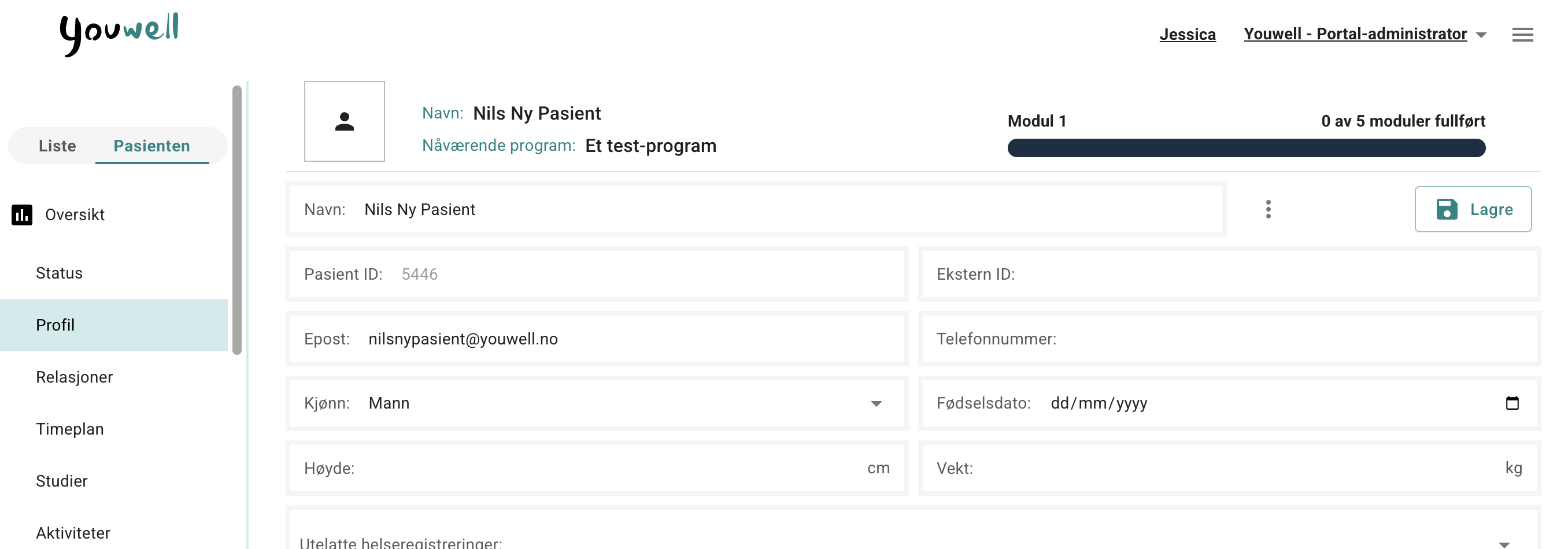 OBS! Dersom organisasjonen din er kun aktivert for anonyme pasienter, vil Ikke-anonym pasient malen ikke vises.