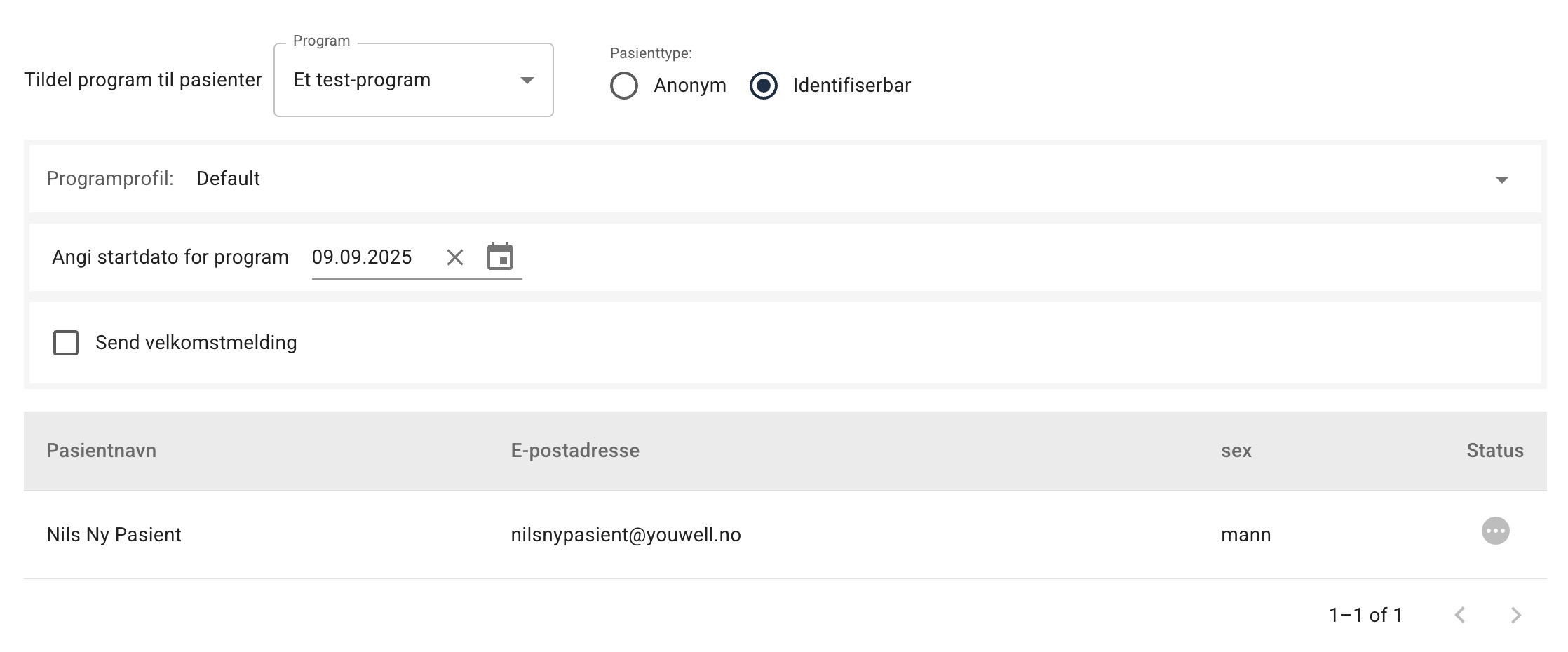 Tildel program: velg hvilket program pasientene skal legges inn i.