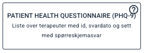 Dersom du har aktivert noen terapeut-skjemaer  aktivert i organisasjonene, vil du også finne noen uttrekk for de. Her er et eksempel med et PHQ-9 skjema:
